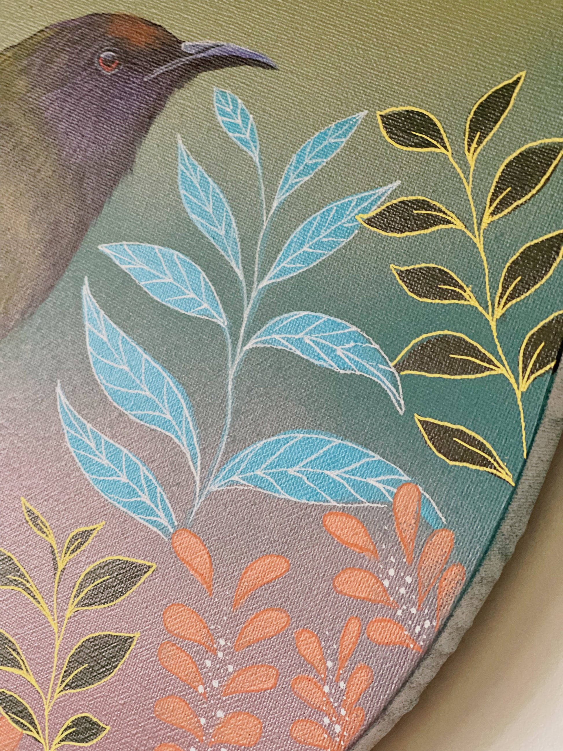 A painting of the native Bell Bird of NZ. Am I the only one who thinks they are so similar to Tui’s just different colours? I definitely adore this bird because of its colours 😍