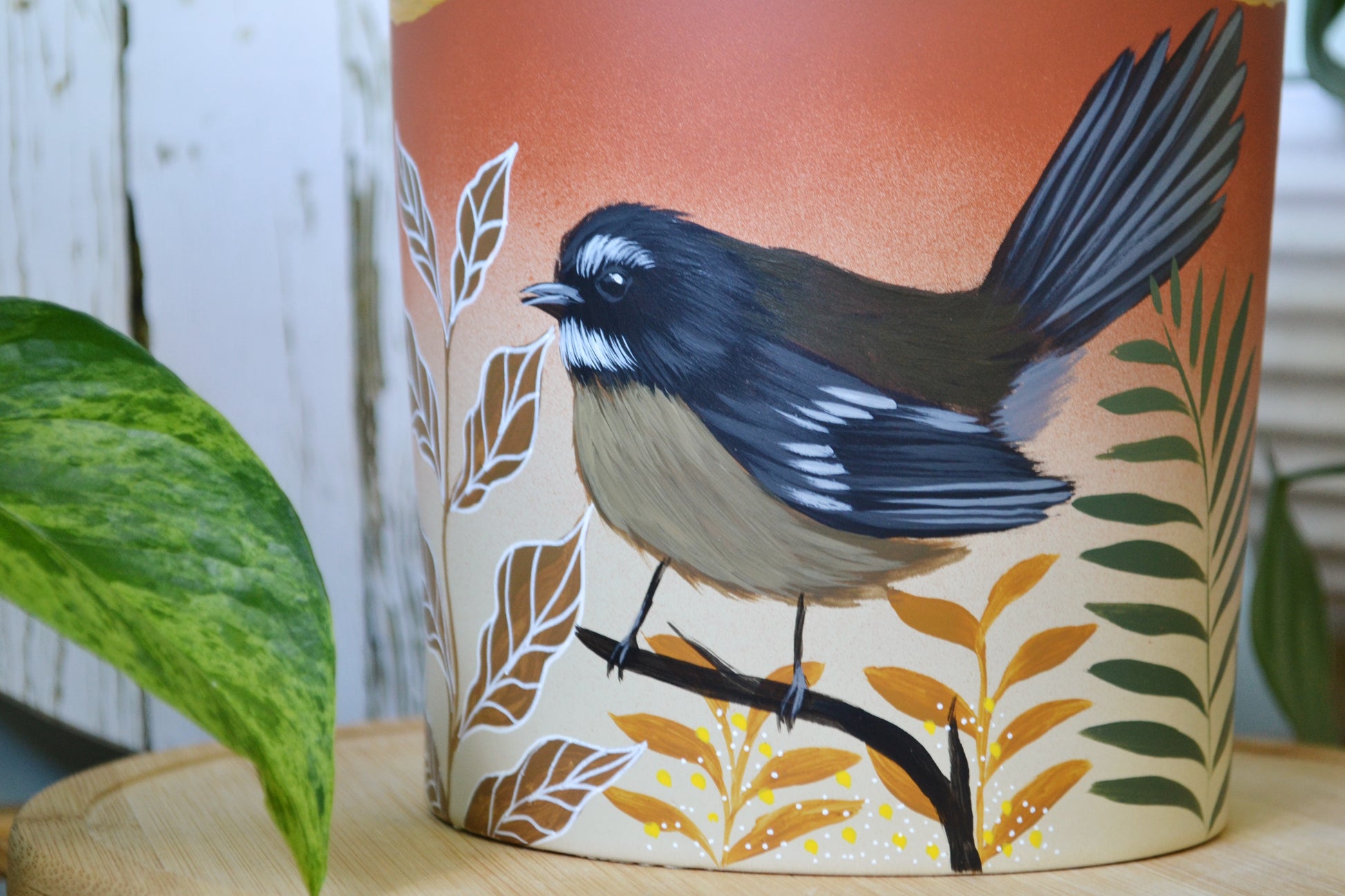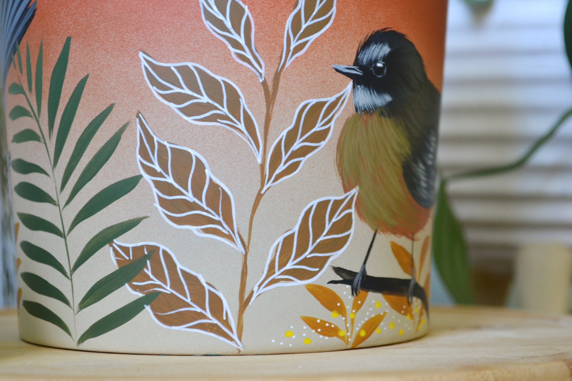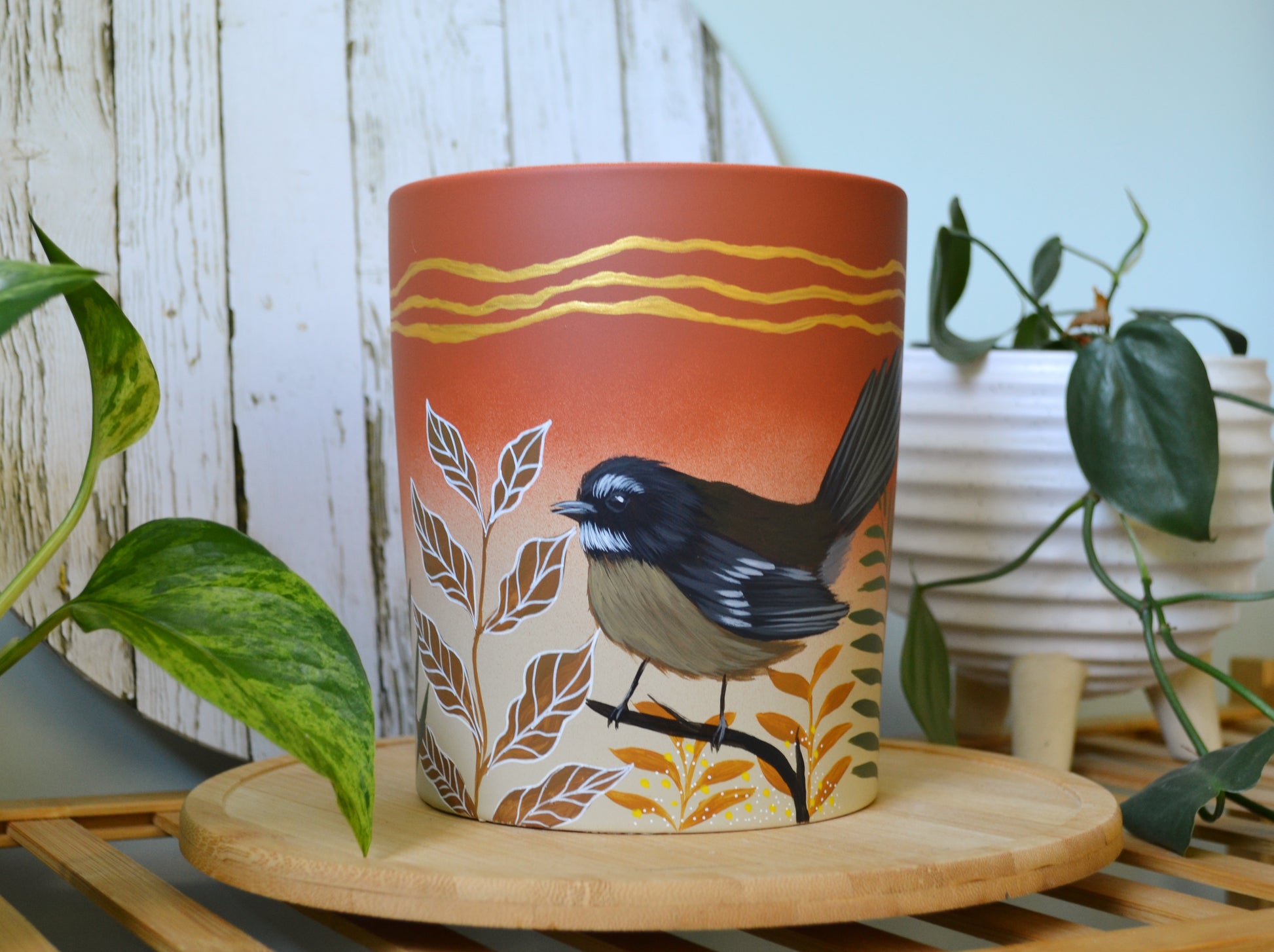 Available in 14cm, 18cm, 20cm, 23cm. Hand painted terracotta pots with UV protectant clear coat. 20cm and 23cm pots have drainage holes.