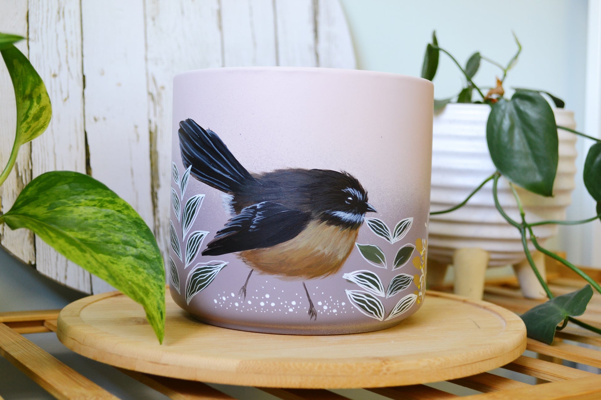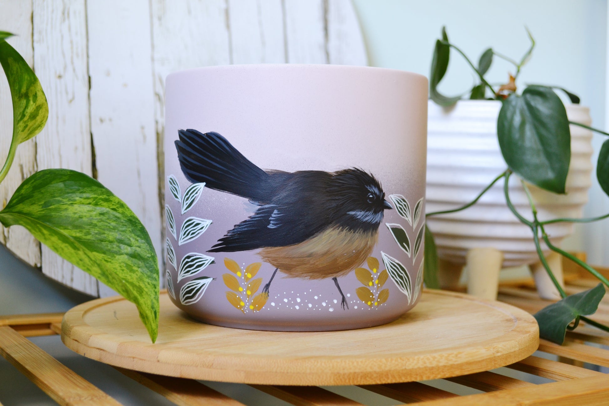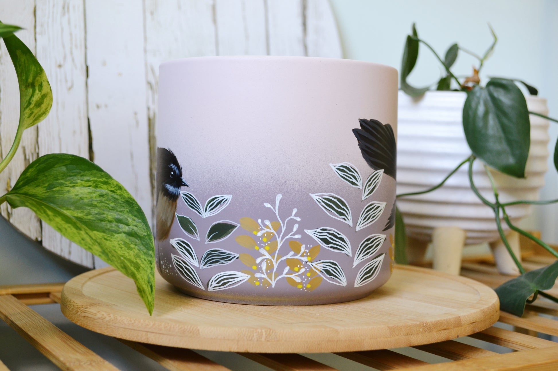 Available in 14cm, 18cm, 20cm, 23cm. Hand painted terracotta pots with UV protectant clear coat. 20cm and 23cm pots have drainage holes.