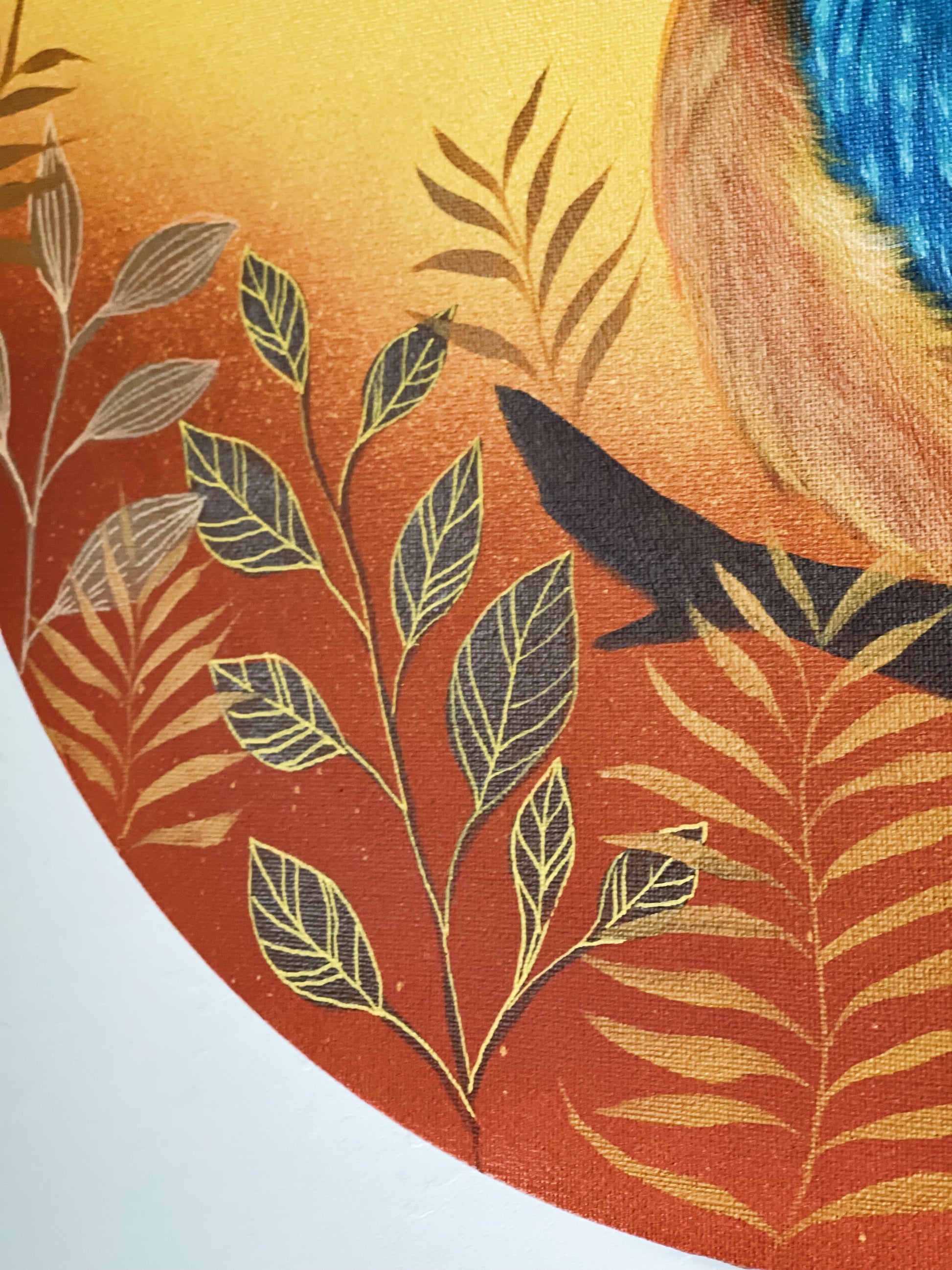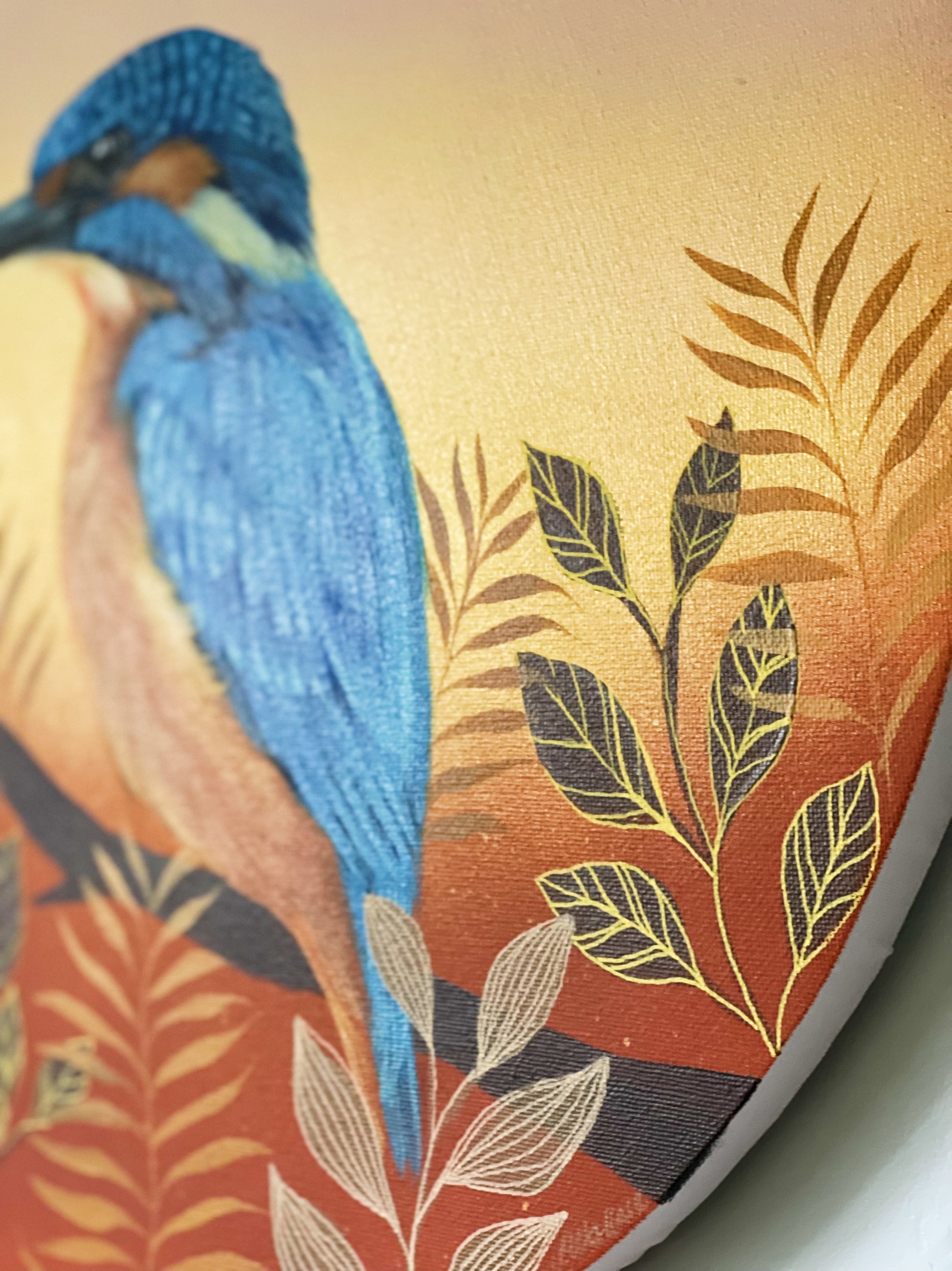 Kingfisher on the lookout. Painted with the most gorgeous colour combo that accentuates the blues of the kingfisher.