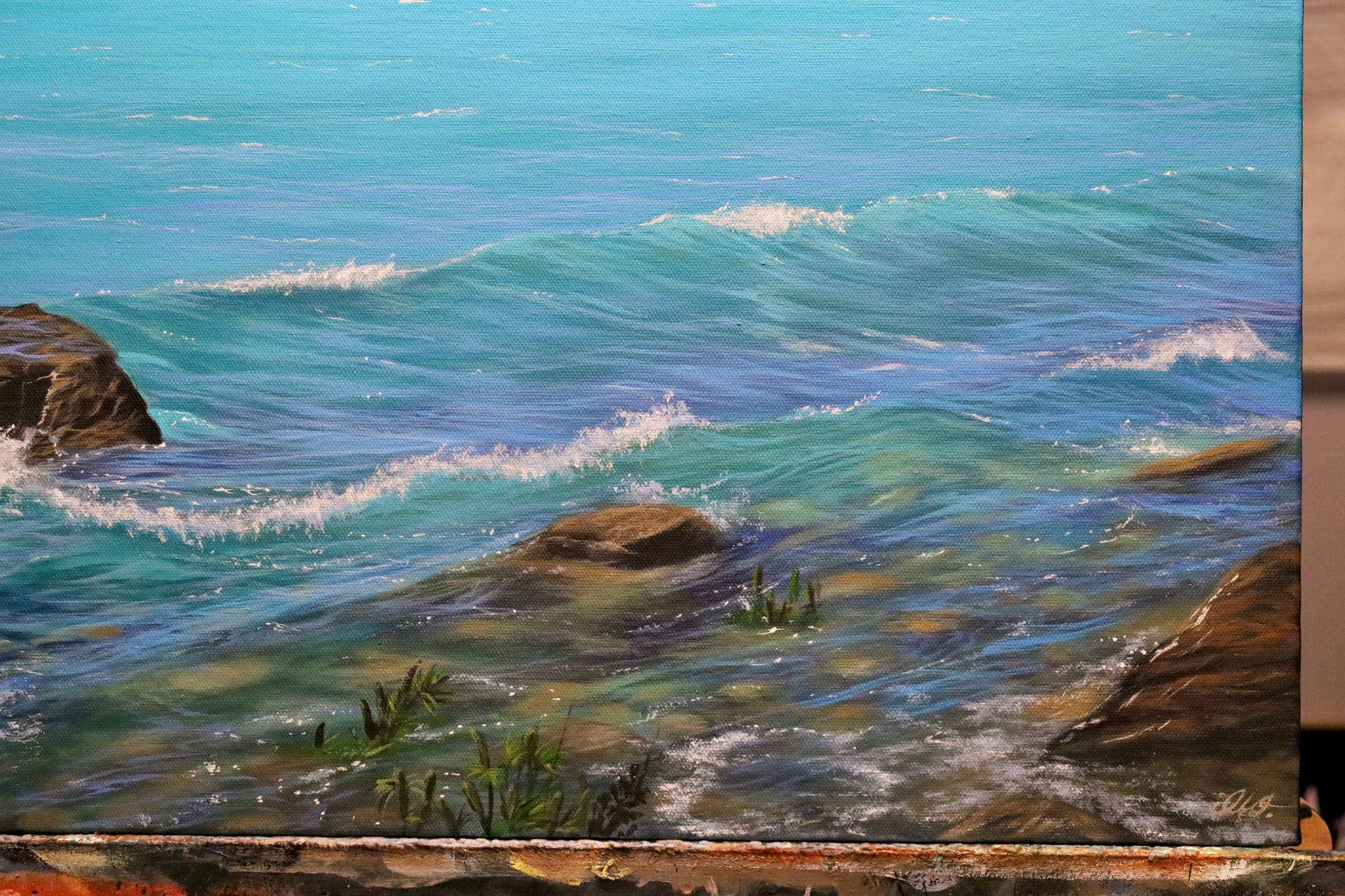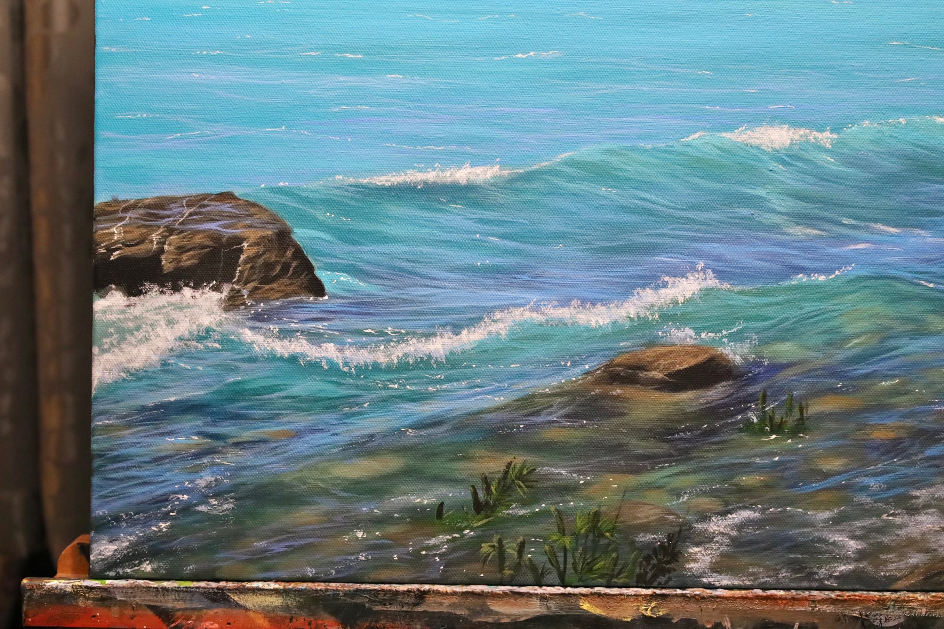 Its not your typical lupin framed Lake Tekapo painting. It features the turquoise clear waters as it moves so elegantly.