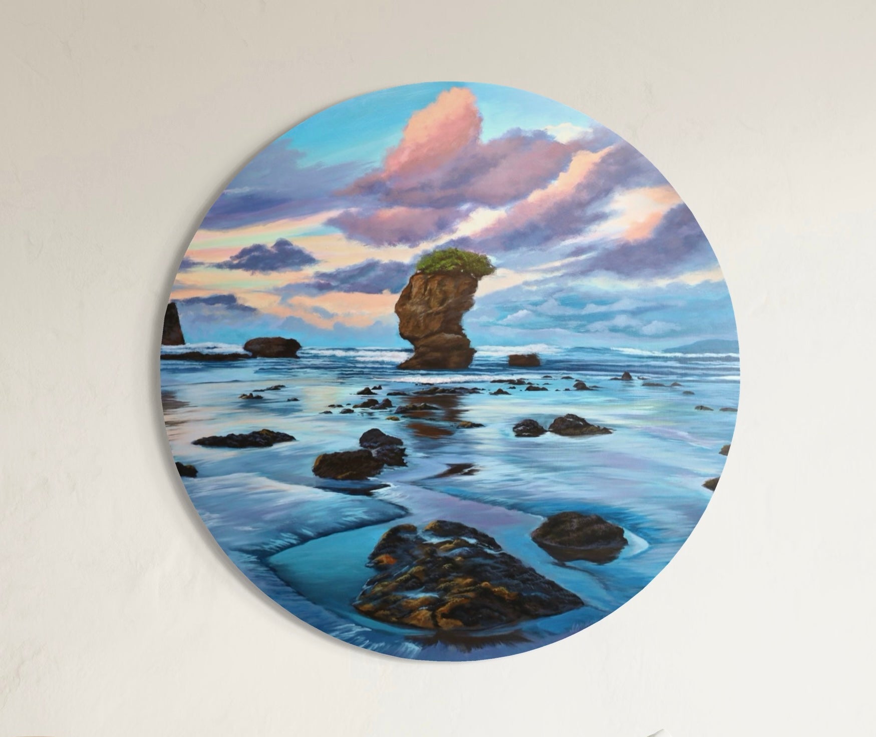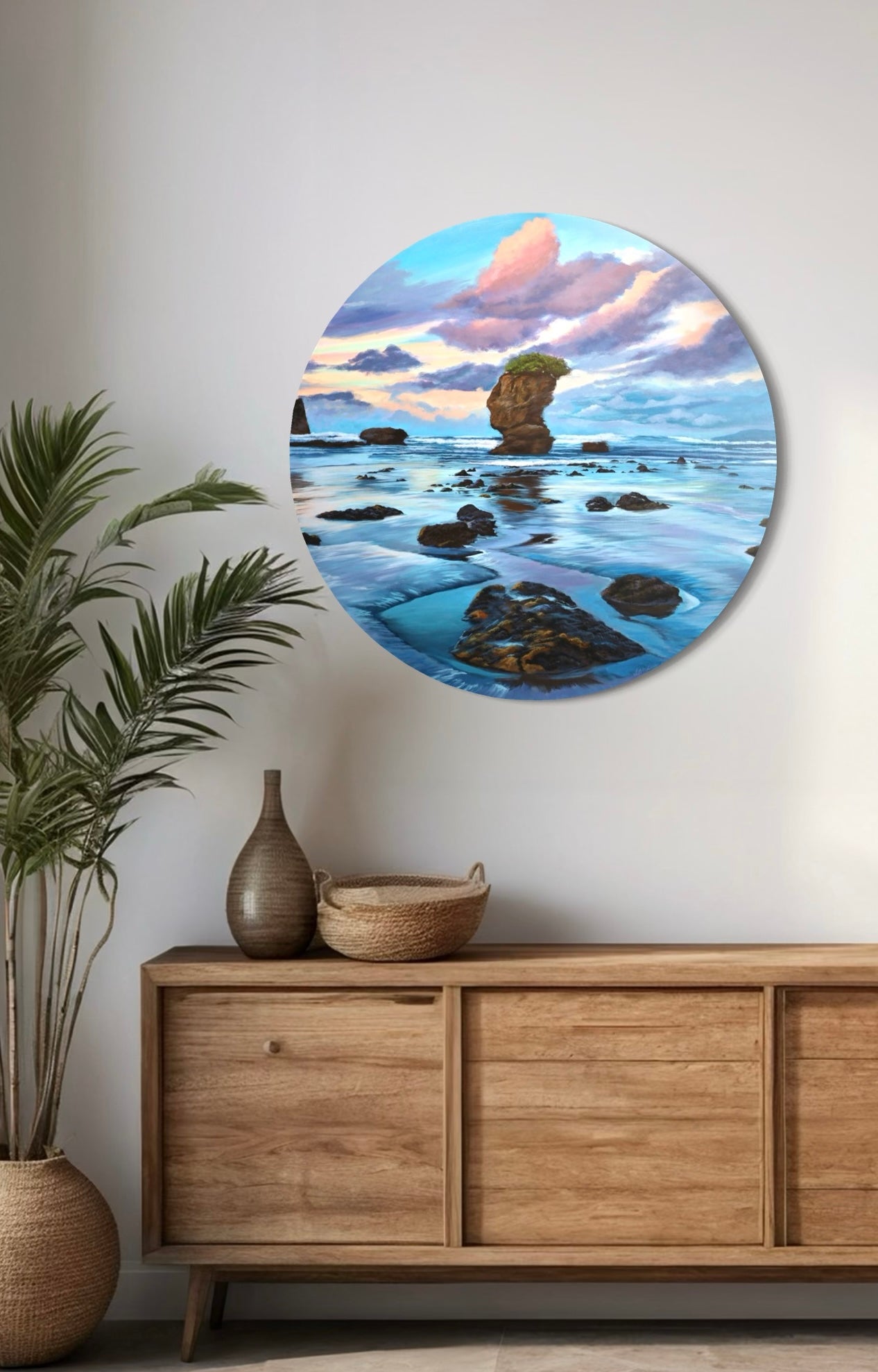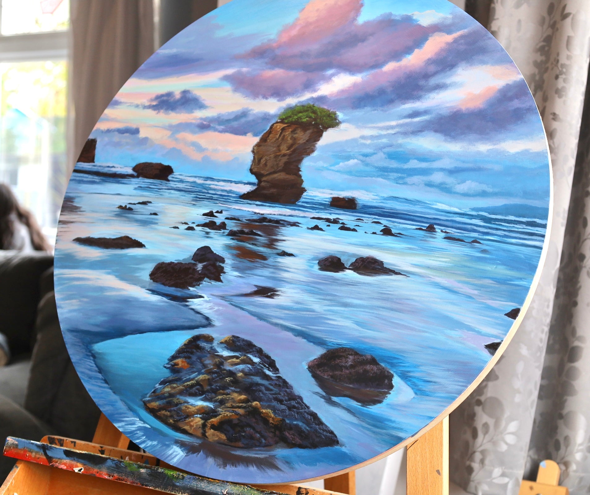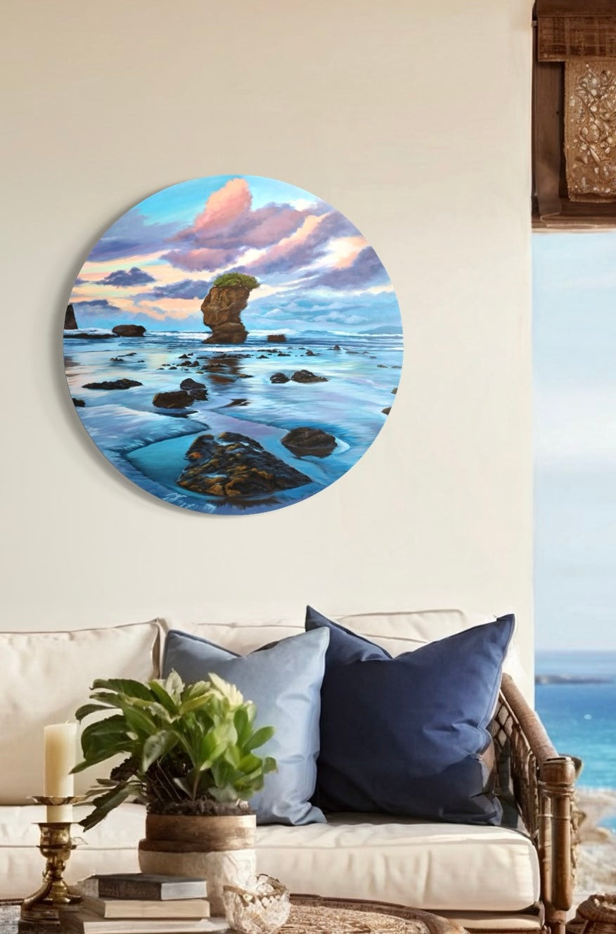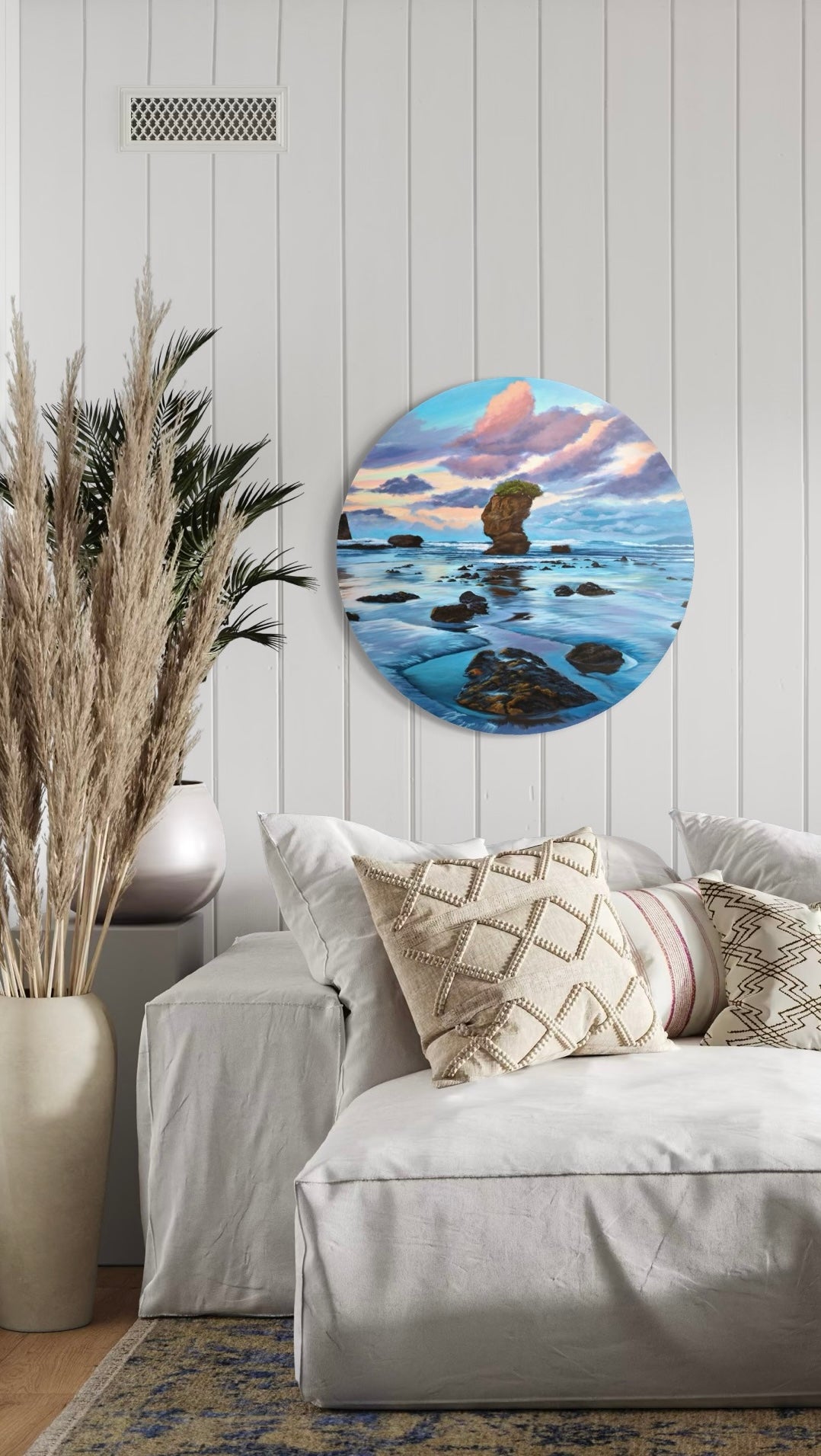 Painted with fine artist acrylics on a 60x60cm wooden panel board. Ready to hang and coated with a UV protectant with a satin finish.